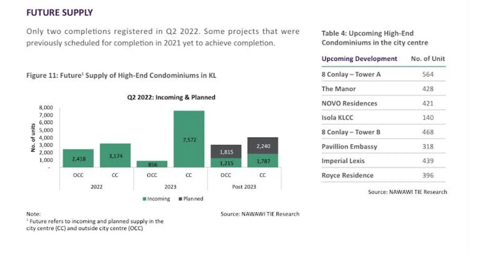 a sharp increase in supply of properties deferred by the MCO in the KL city centre (more than 7500 units in 2023 compared to just 3200 units this year) according to Nawawi Tie. See the figure below :