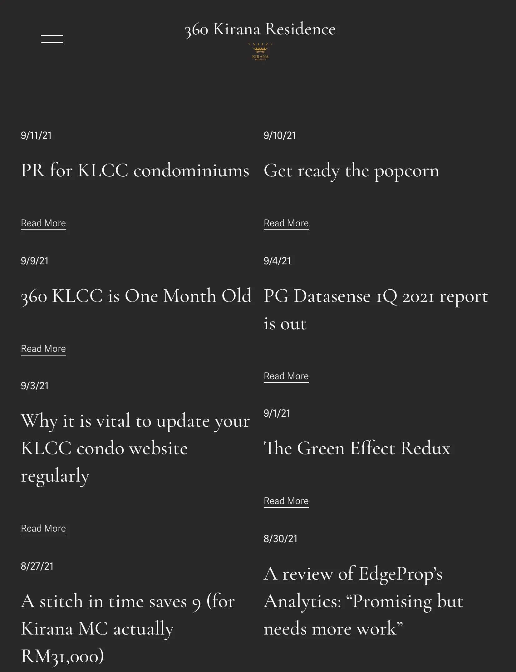 The blog posts on 360 KLCC in my view make subtle use of Kirana Residence as an example of how to update KLCC condominium websites, why it is important to check invoices from contractors for billing mistakes, and many more.