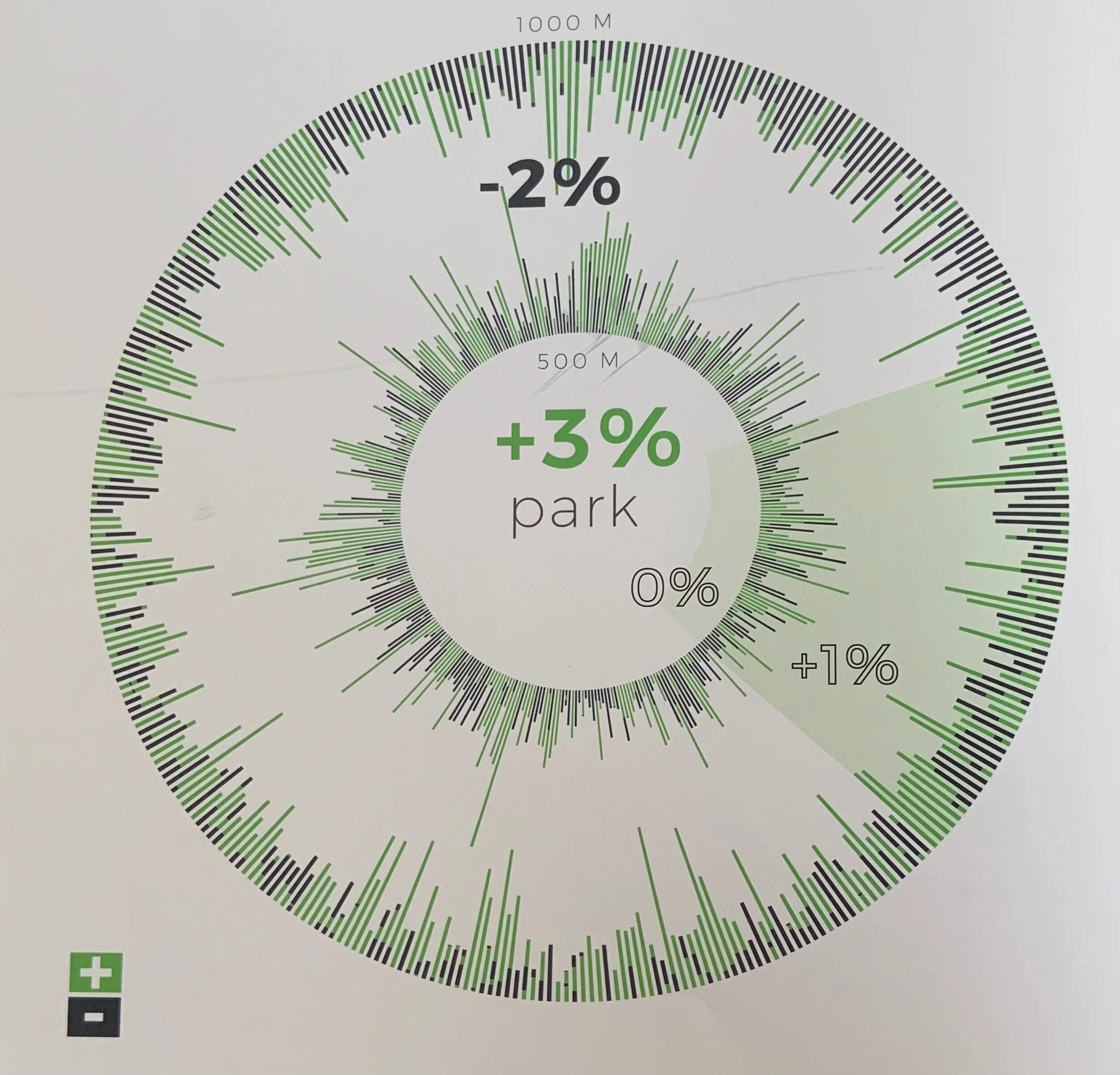 The scope of Secret Atlas in comparison was much more modest. It only looked at property price transactions for a single year (2015) for Greater KL, a single city, the selected cut off points of 500m and 1000m were further away, and nothing was said about the size of the greenery or park.