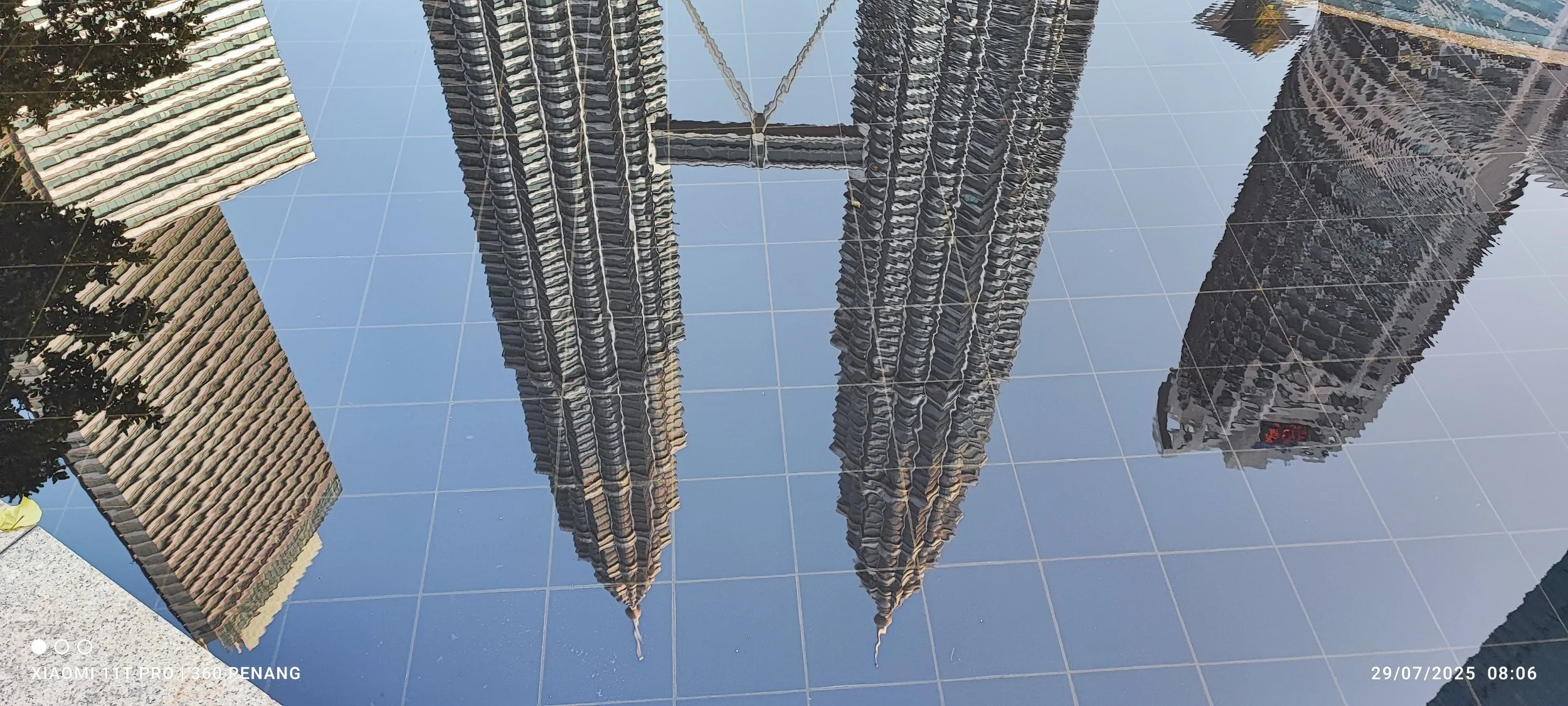 They were shooting pictures of the reflections of buildings in the water, they explained in Cantonese. Ah! Well I soon followed their lead. The Petronas Twin Towers are reflected in water below.